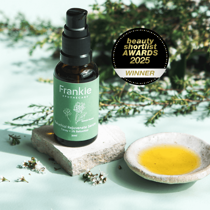 We're Georgina and Matt, the team behind Frankie Apothecary's range of natural, low-waste skincare products made with New Zealand native Kawakawa.